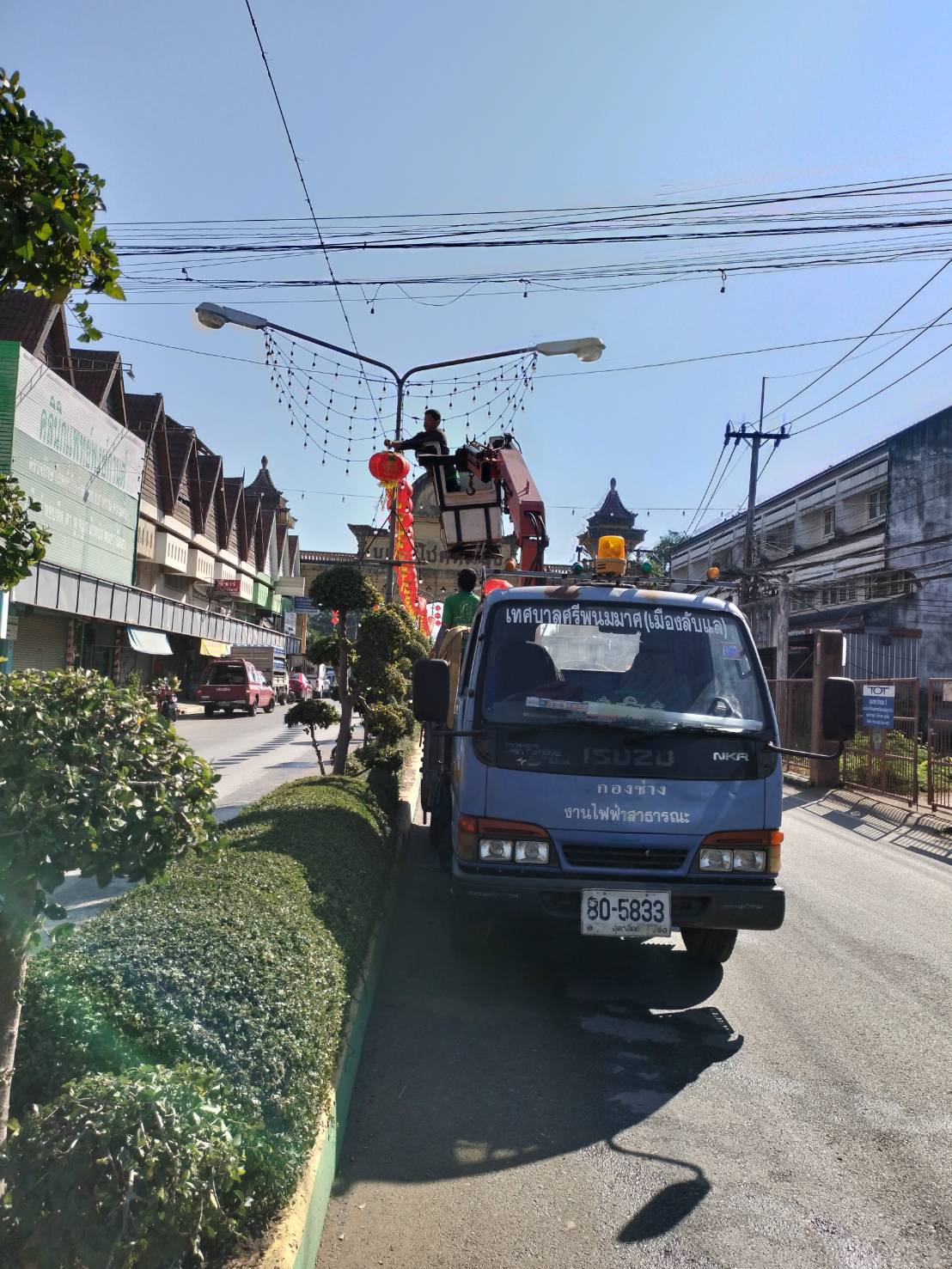 ติดโคมจีน บริเวณเกาะกลางถนนอินใจมี และบริเวณด้านหน้าตลาดสดเท...