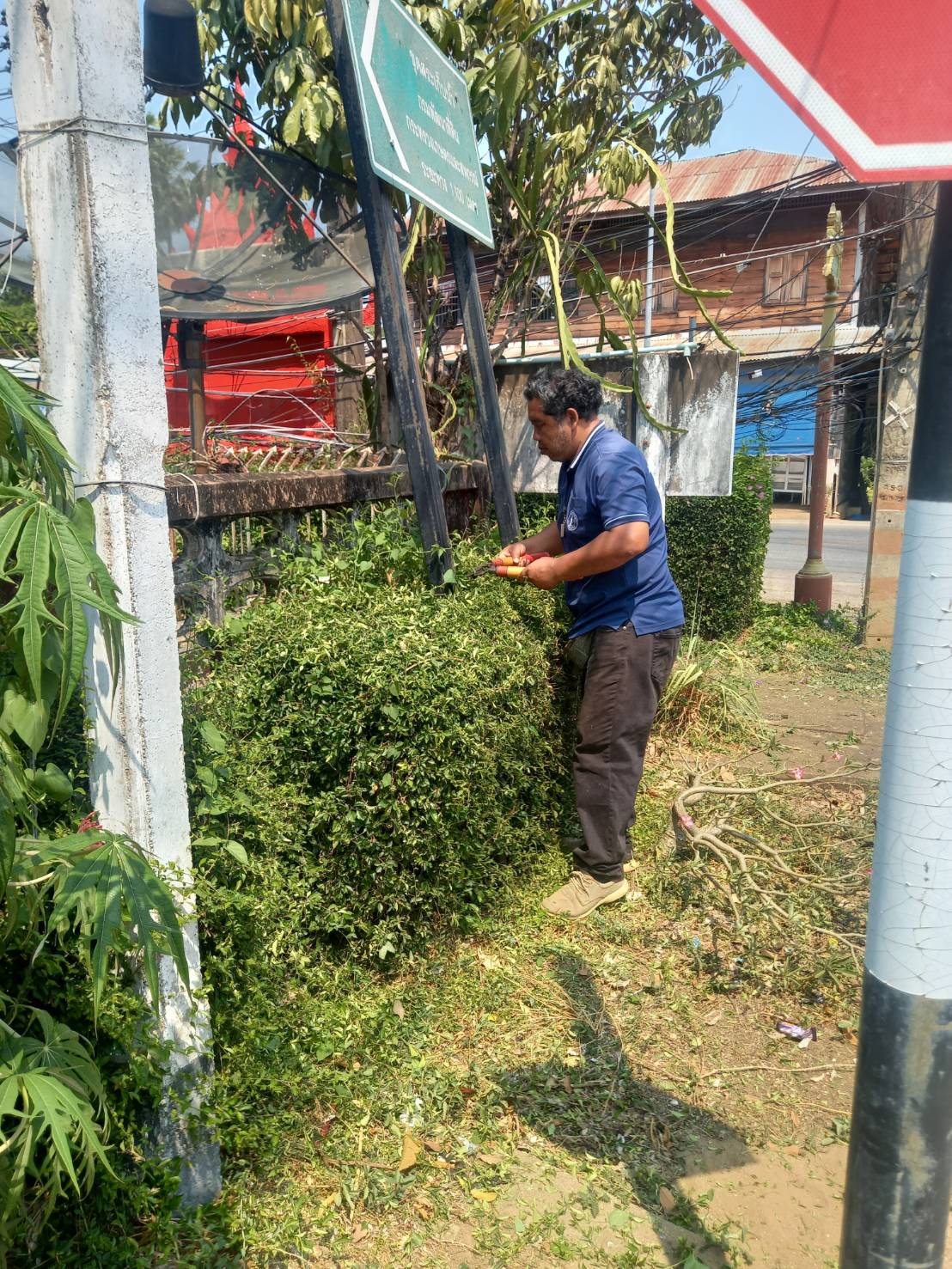 ตัดหญ้า ตกแต่งสวนหย่อม บริเวณหน้าวัดดอนไชย