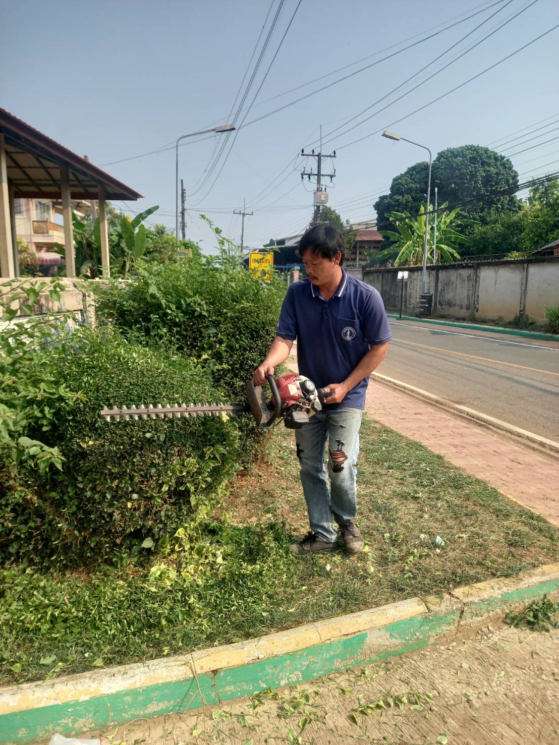 ตัดหญ้า ตกแต่งสวนหย่อม บริเวณหน้าวัดไชย์จุมพล